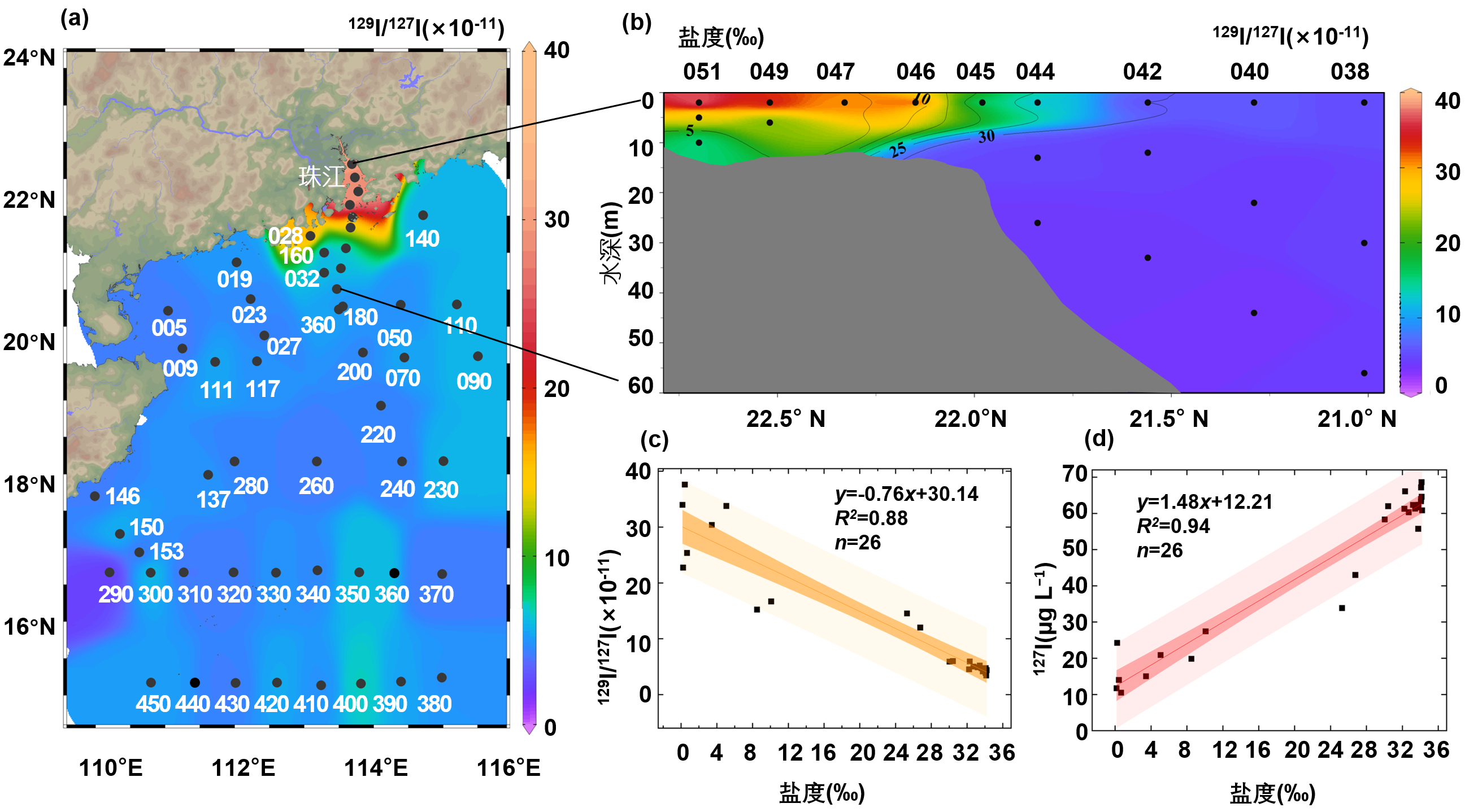 随着沿海核电快速发展及周边核活动频繁,我国海洋放射性污染态势日益严峻。南海北部沿岸核电站密集、人口众多,且珠三角为重要经济中心,亟需开展相关放射性核素在边缘海中的分布规律和传输机制研究。目前该区域针对水溶性放射性核素的系统研究和定量评估仍较为缺乏。长半衰期的碘-129(129I)因其高水溶性和亲生物性成为研究放射性污染物迁移和转化机制的理想示踪剂。