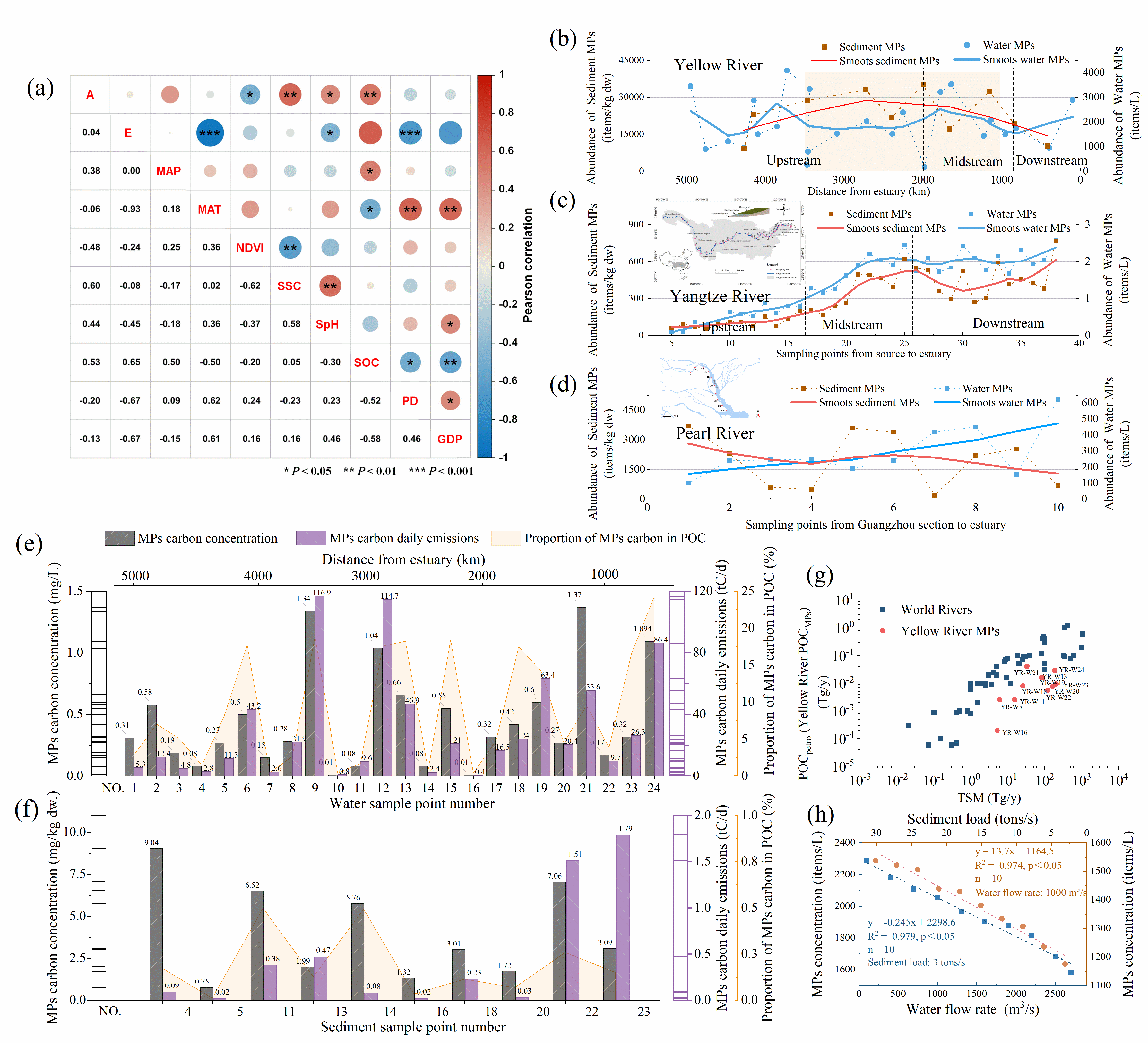 图2. 黄河干流中微塑料颗粒有机碳的空间分布特征以及与环境因素的关系