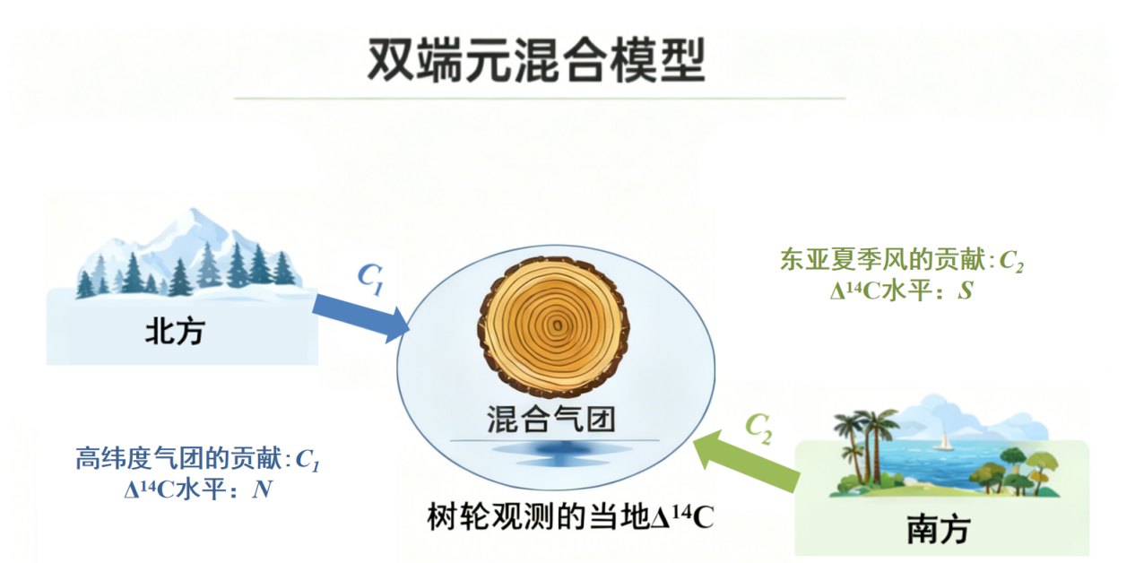 图6 核爆时期通过双端元混合模型量化东亚夏季风对区域背景点影响的原理。